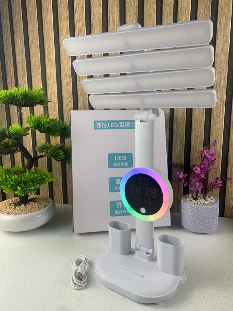 أضف لمسة من الحداثة والأناقة إلى مكتبك مع مصباح المكتب الذكي LED المزود بإضاءة محيطة ناعمة وشاشة رقمية مدمجة. مثالي للطلاب، المهنيين أو عشاق القراءة الذين يبحثون عن إضاءة مريحة وعملية في نفس الوقت.