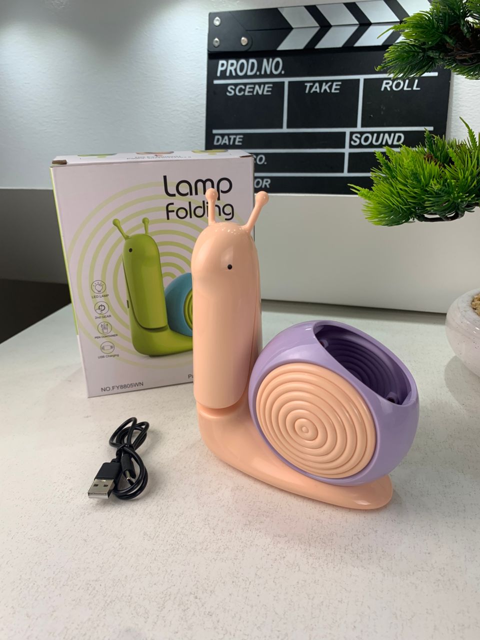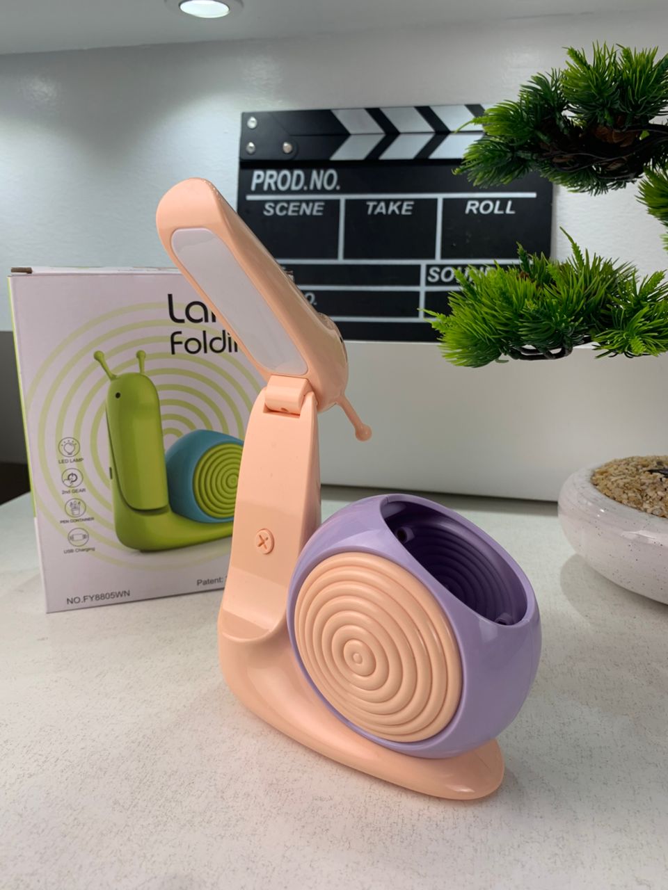 Lampe Veilleuse Escargot Mignonne LED avec Porte-stylo – مصباح على شكل حلزون لمكتب الأطفال