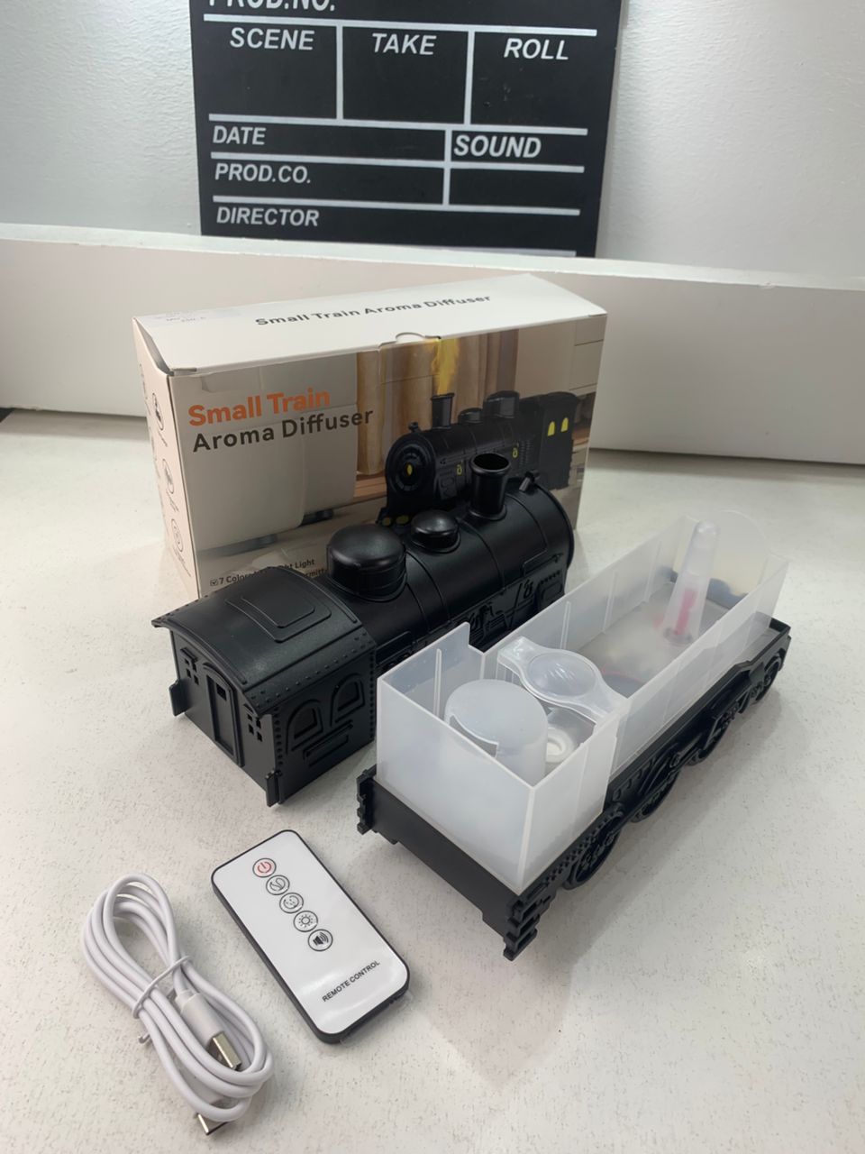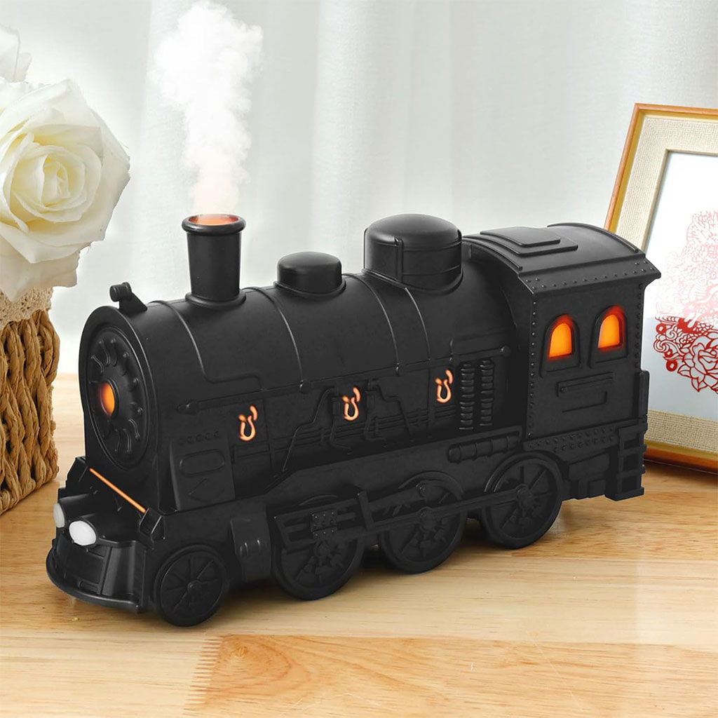 🌫️ موزع الزيوت العطرية على شكل قطار بخاري بتصميم فاخر وعملية ترطيب هادئة